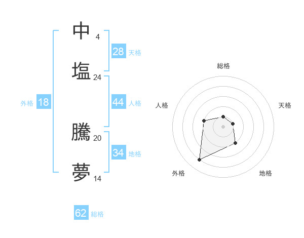 中塩 騰夢さんを姓名の画数から五運を鑑定