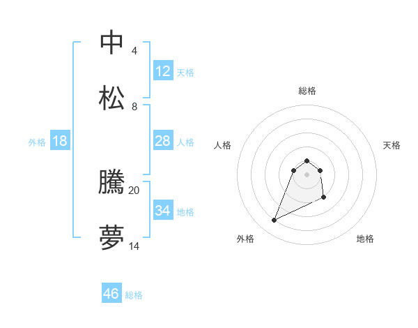 中松 騰夢さんの総格は46画の1点!