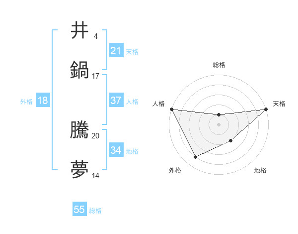 井鍋 騰夢さんの総格は55画の1点!