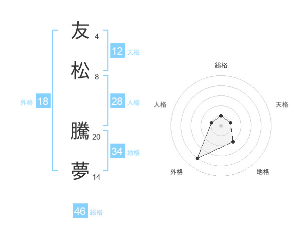 友松 騰夢さんを姓名の画数から五運を鑑定