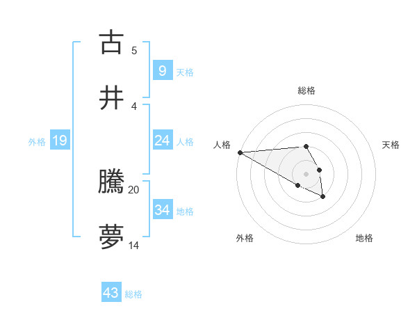 古井 騰夢さんを姓名の画数から五運を鑑定
