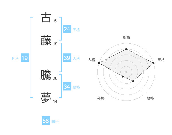 古藤 騰夢さんを姓名の画数から五運を鑑定