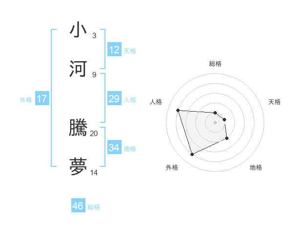 小河 騰夢さんを姓名の画数から五運を鑑定