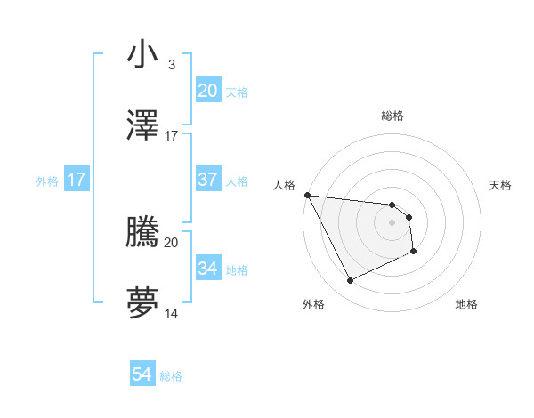 小澤 騰夢さんの天格は20画の1点!