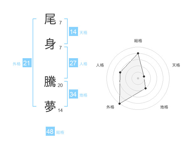 尾身 騰夢さんの総格は48画の4点!