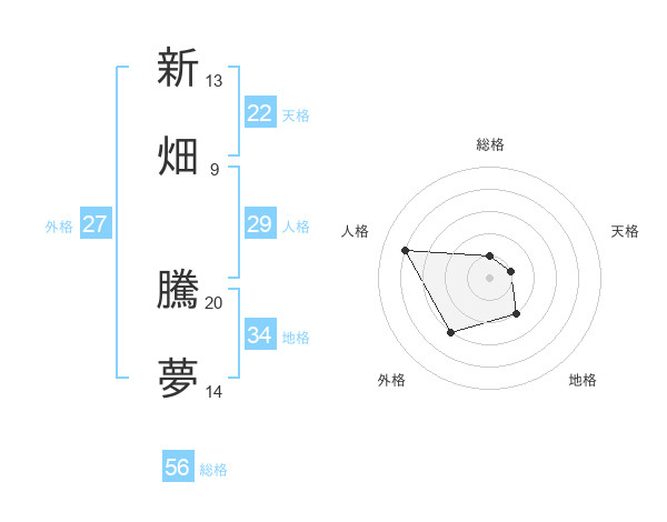 新畑 騰夢さんの外格は27画の3点!