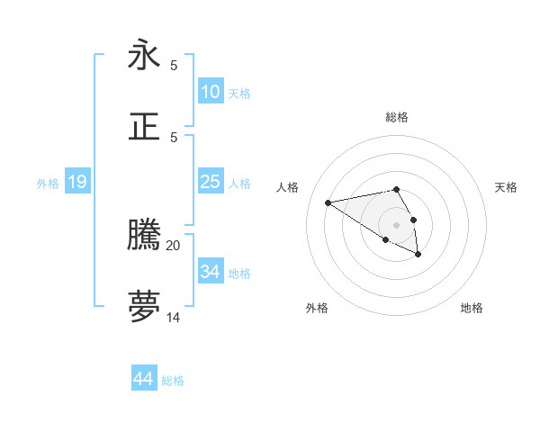 永正 騰夢さんの総格は44画の2点!