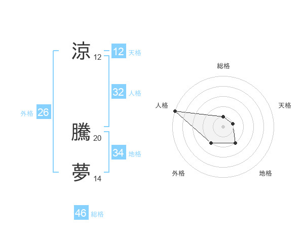 涼 騰夢さんの総格は46画の1点!