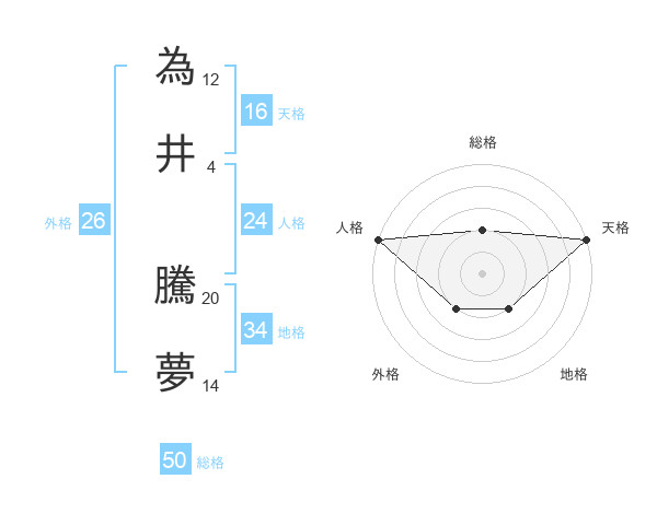為井 騰夢さんの総格は50画の2点!