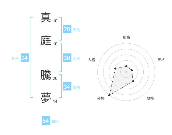 真庭 騰夢さんを姓名の画数から五運を鑑定
