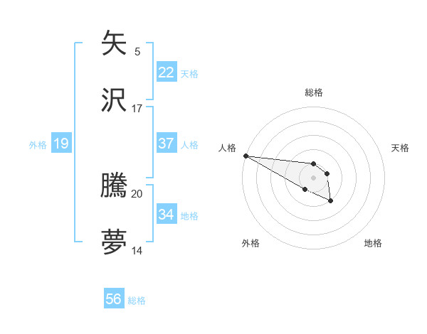 矢沢 騰夢さんを姓名の画数から五運を鑑定