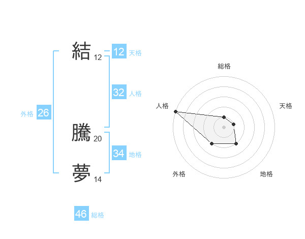 結 騰夢さんの総格は46画の1点!