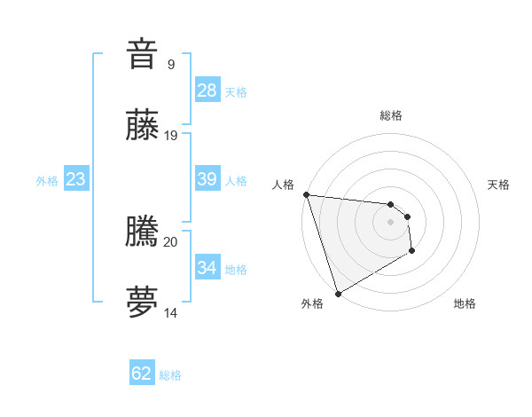 音藤 騰夢さんを姓名の画数から五運を鑑定