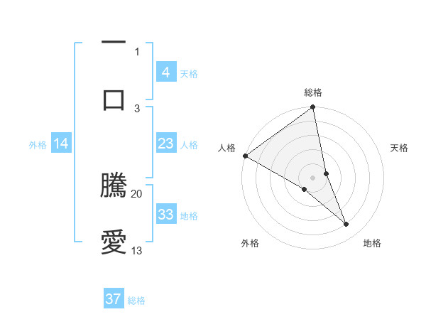 一口 騰愛さんを姓名の画数から五運を鑑定