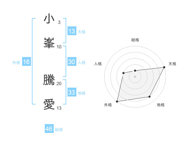 小峯 騰愛さんの天格は13画の5点!