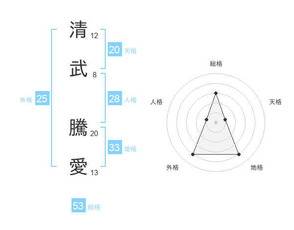 清武 騰愛さんを姓名の画数から五運を鑑定