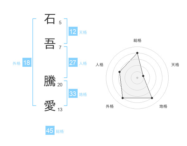 石吾 騰愛さんの総格は45画の4点!