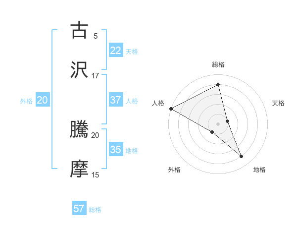 古沢 騰摩さんを姓名の画数から五運を鑑定