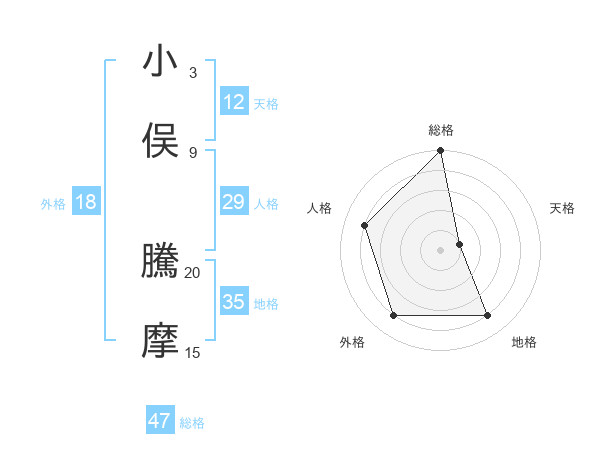 小俣 騰摩さんの総格は47画の5点!