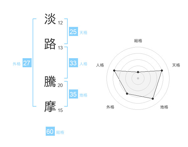 淡路 騰摩さんを姓名の画数から五運を鑑定