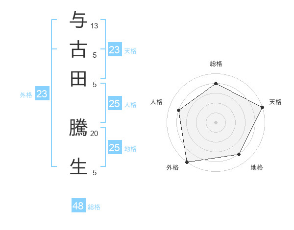与古田 騰生さんを姓名の画数から五運を鑑定