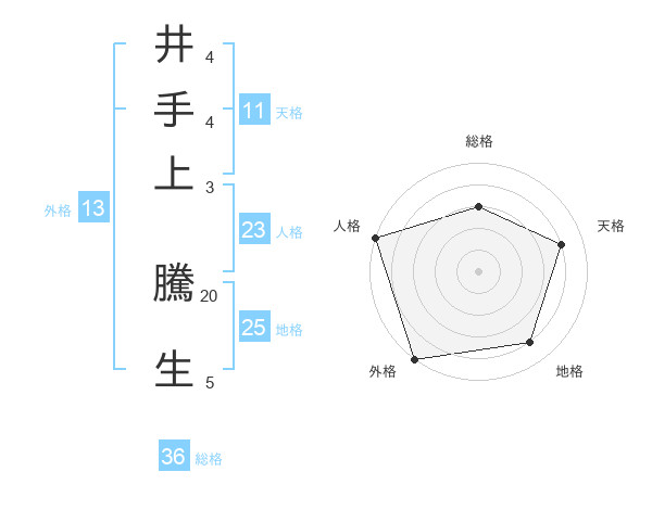 井手上 騰生さんの外格は13画の5点!