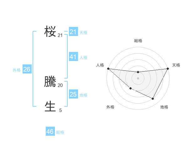 桜 騰生さんの総格は46画の1点!