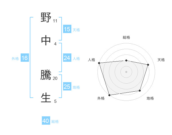 野中 騰生さんを姓名の画数から五運を鑑定