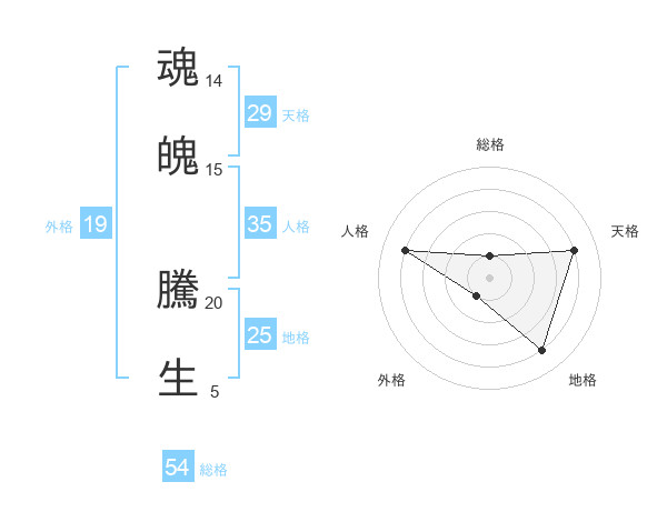 魂魄 騰生さんの総格は54画の1点!