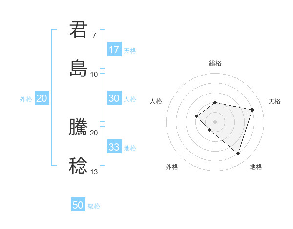 君島 騰稔さんの天格は17画の4点!