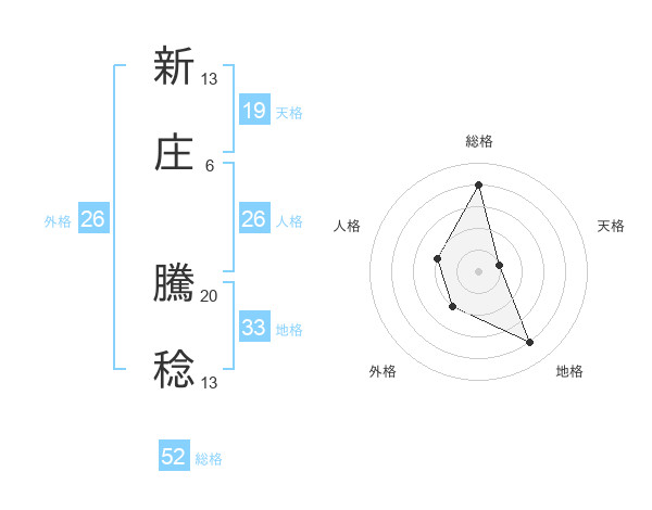 新庄 騰稔さんの総格は52画の4点!