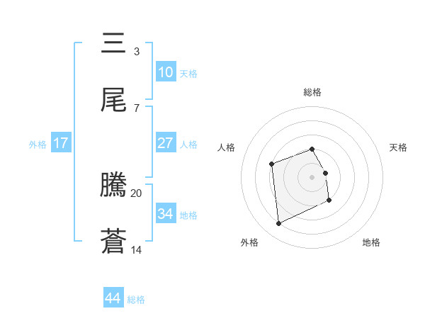 三尾 騰蒼さんを姓名の画数から五運を鑑定