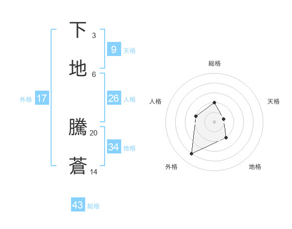 下地 騰蒼さんを姓名の画数から五運を鑑定