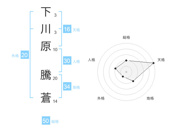 下川原 騰蒼さんの総格は50画の2点!
