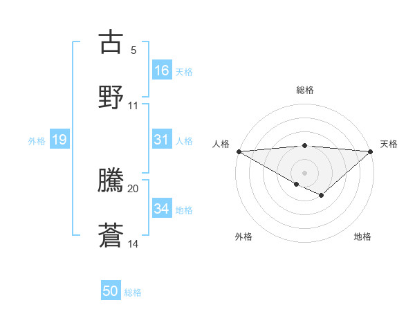 古野 騰蒼さんを姓名の画数から五運を鑑定