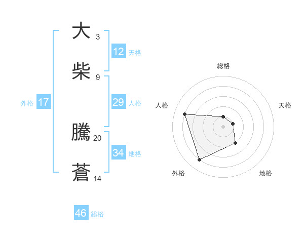 大柴 騰蒼さんを姓名の画数から五運を鑑定