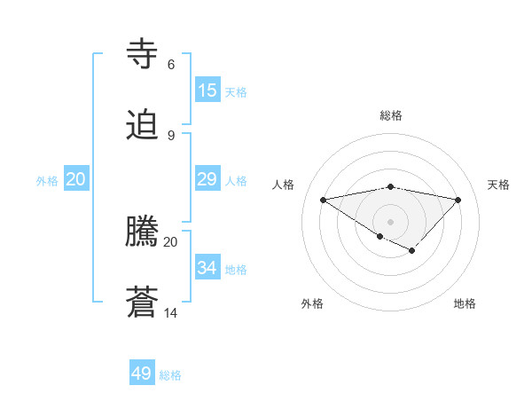 寺迫 騰蒼さんの総格は49画の2点!