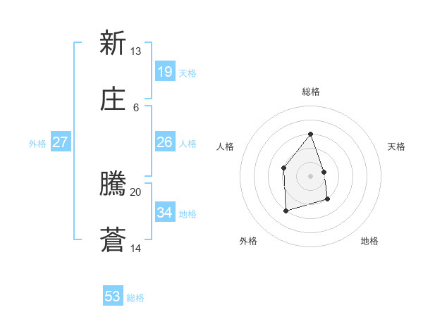 新庄 騰蒼さんの総格は53画の3点!