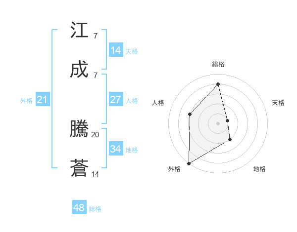 江成 騰蒼さんの総格は48画の4点!