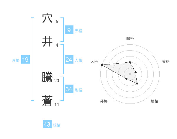 穴井 騰蒼さんの総格は43画の2点!