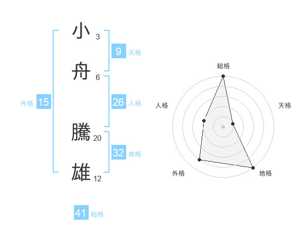小舟 騰雄さんの総格は41画の5点!