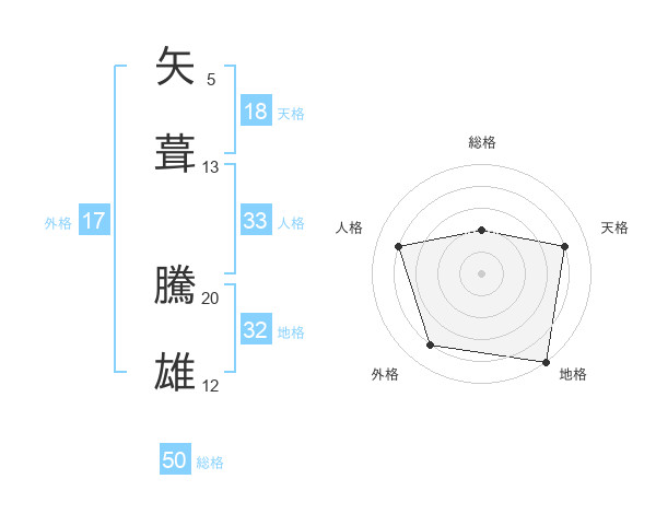 矢葺 騰雄さんの総格は50画の2点!
