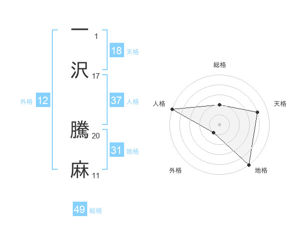 一沢 騰麻さんを姓名の画数から五運を鑑定