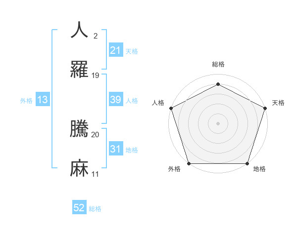 人羅 騰麻さんの総格は52画の4点!