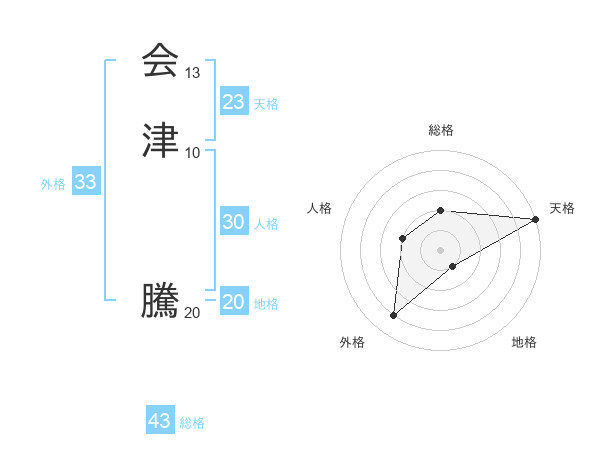 会津 騰さんの総格は43画の2点!