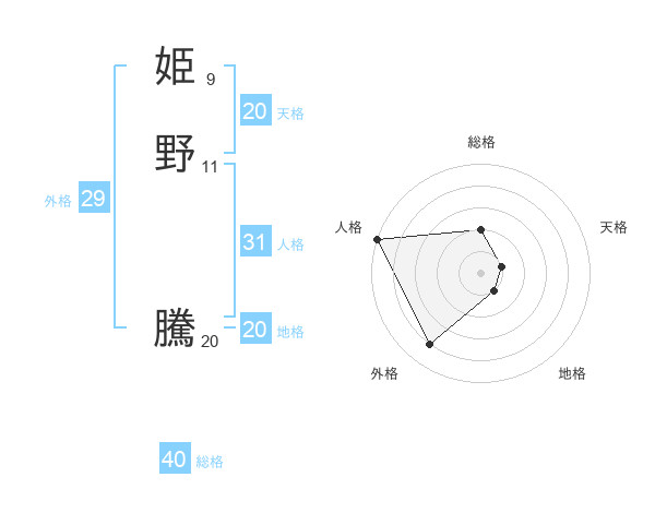 姫野 騰さんの総格は40画の2点!