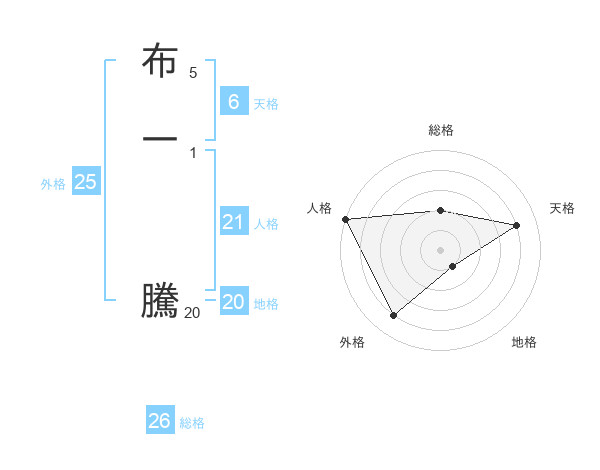 布一 騰さんの地格は20画の1点!