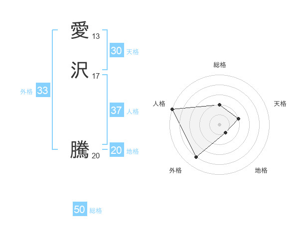 愛沢 騰さんを姓名の画数から五運を鑑定
