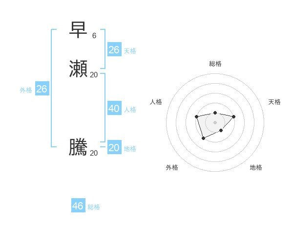 早瀬 騰さんの天格は26画の2点!