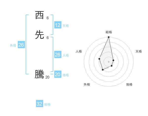 西先 騰さんの総格は32画の5点!